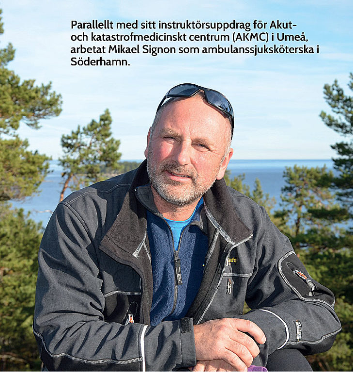 Parallellt med sitt instruktörsuppdrag arbetar Mikael Signon som ambulanssjuksköterska i Söderhamn.