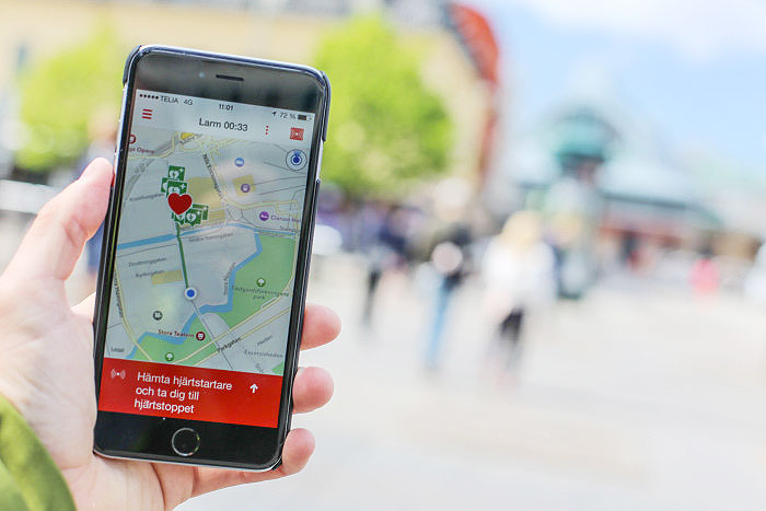 I projekt SMS-livräddare används mobil positioneringsteknik för att larma frivilliga till misstänkta hjärtstopp som inträffat i närheten för att bistå med hjärt-lungräddning och för att hämta närmaste hjärtstartare.